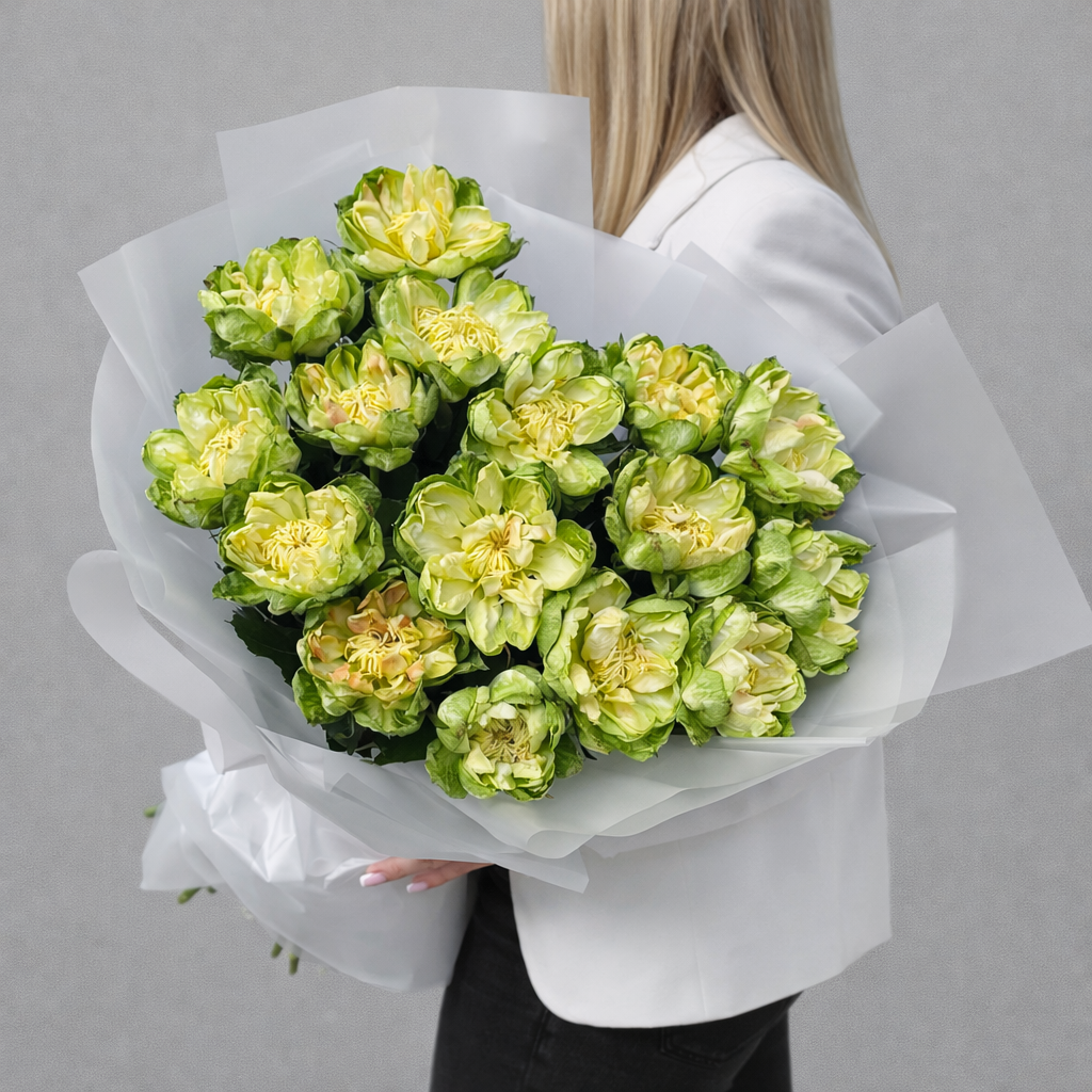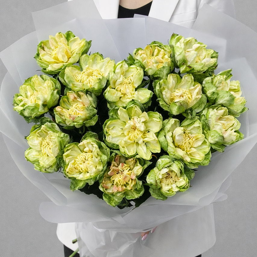 Роскошный букет из экзотических роз Veggie (15 штук) в дизайнерской упаковке