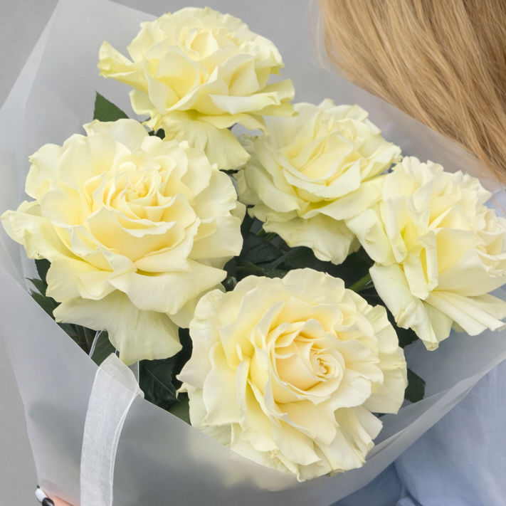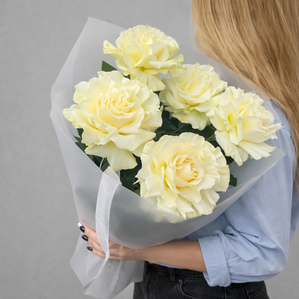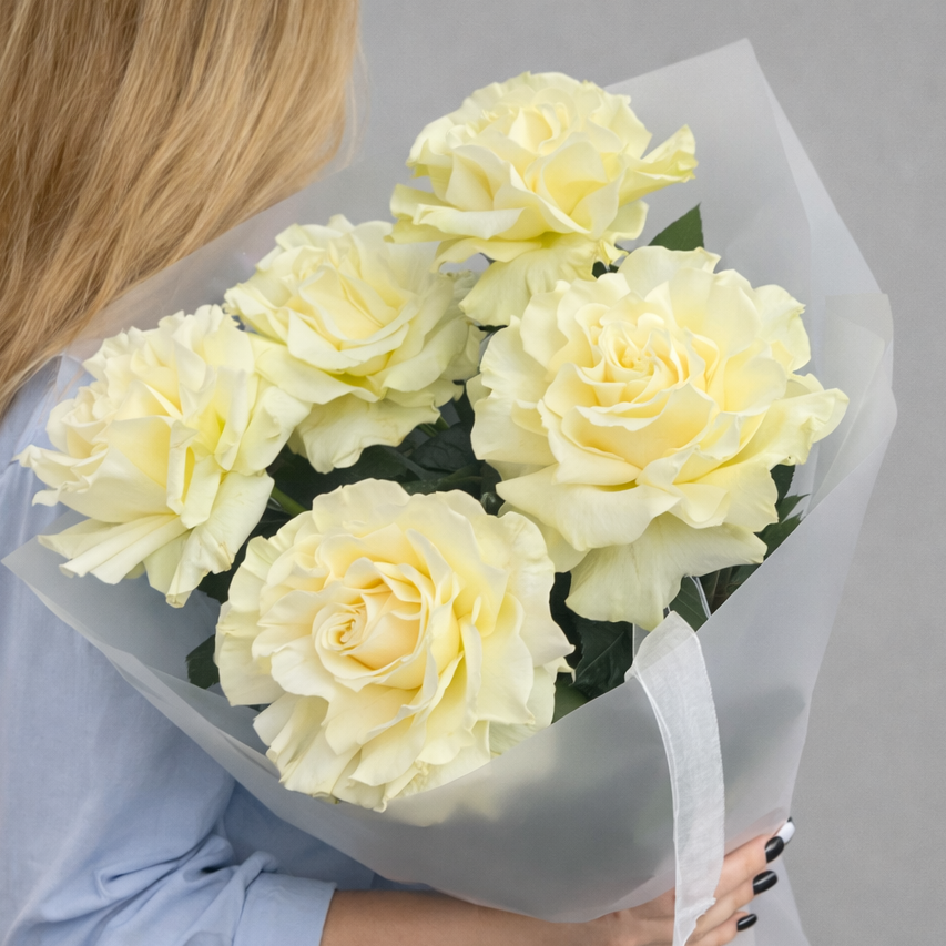 Белые розы 5 штук — это классическое и стильное количество, которое выглядит элегантно, не перегружая композицию. Такой букет подойдет для самых разных случаев, от романтического жеста до важного корпоративного события. Он также будет идеальным вариантом для букета женщине, ведь белые розы выражают восхищение и уважение.