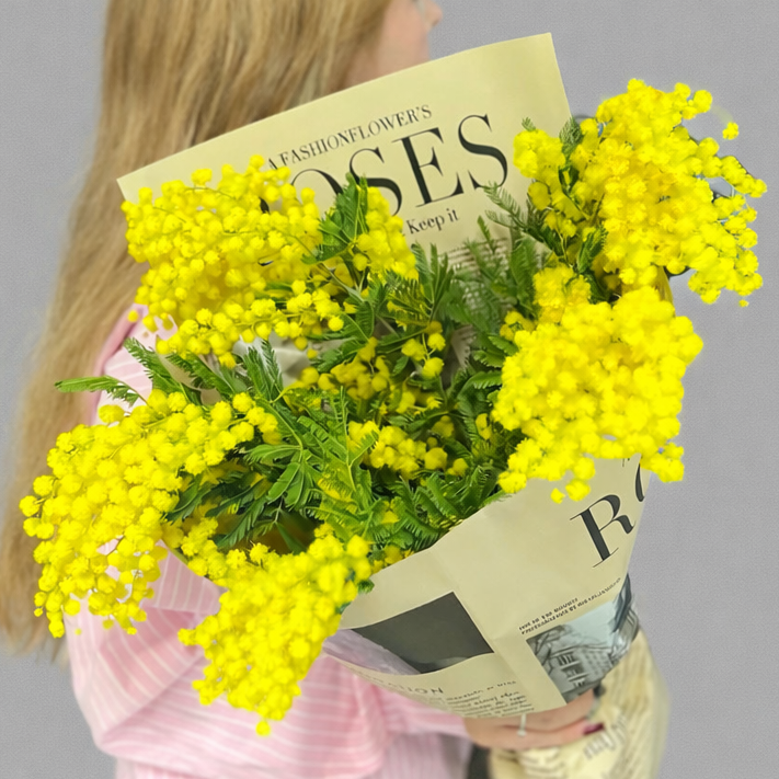 Этот вариант подойдёт тем, кто планирует купить букет цветов в Москве недорого, заказать монобукет с быстрой доставкой на дом или выбрать ароматный весенний букет в дизайнерской упаковке. Мимоза выглядит воздушно, нежно и при этом эффектно благодаря насыщенному жёлтому оттенку.