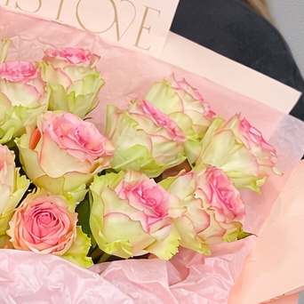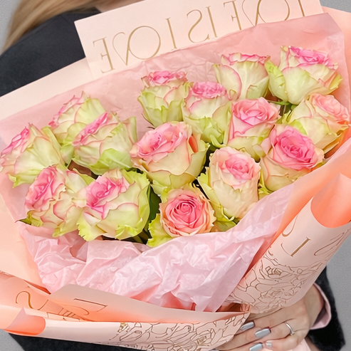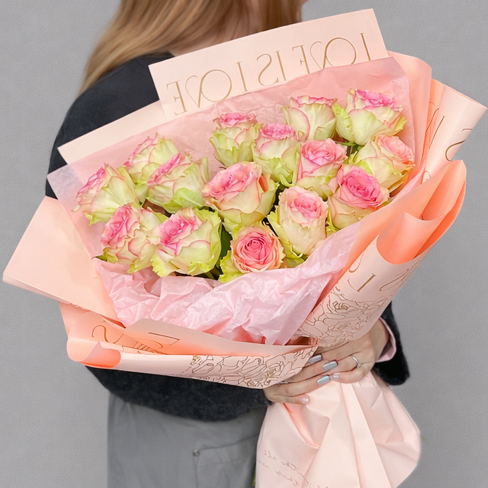 Монобукет из роз Эсперанса (Эквадор) — это элегантная и утончённая классика в современном оформлении. Нежные бутоны с кремово-зелёными лепестками и ярко-розовой окантовкой выглядят особенно эффектно и привлекают внимание с первого взгляда. 15 эквадорских роз создают пышную, гармоничную композицию, которая идеально подходит для особенного повода.