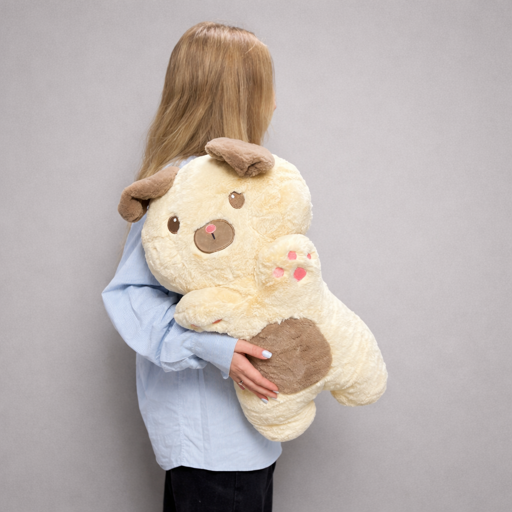 Очаровательная плюшевая собака высотой 60 см — это нежный и трогательный подарок, который идеально дополнит букет цветов. Мягкая, приятная на ощупь игрушка выполнена в кремово-бежевых оттенках с милыми ушками и лапками, что делает её универсальным подарком для девушки, ребенка или близкого человека.