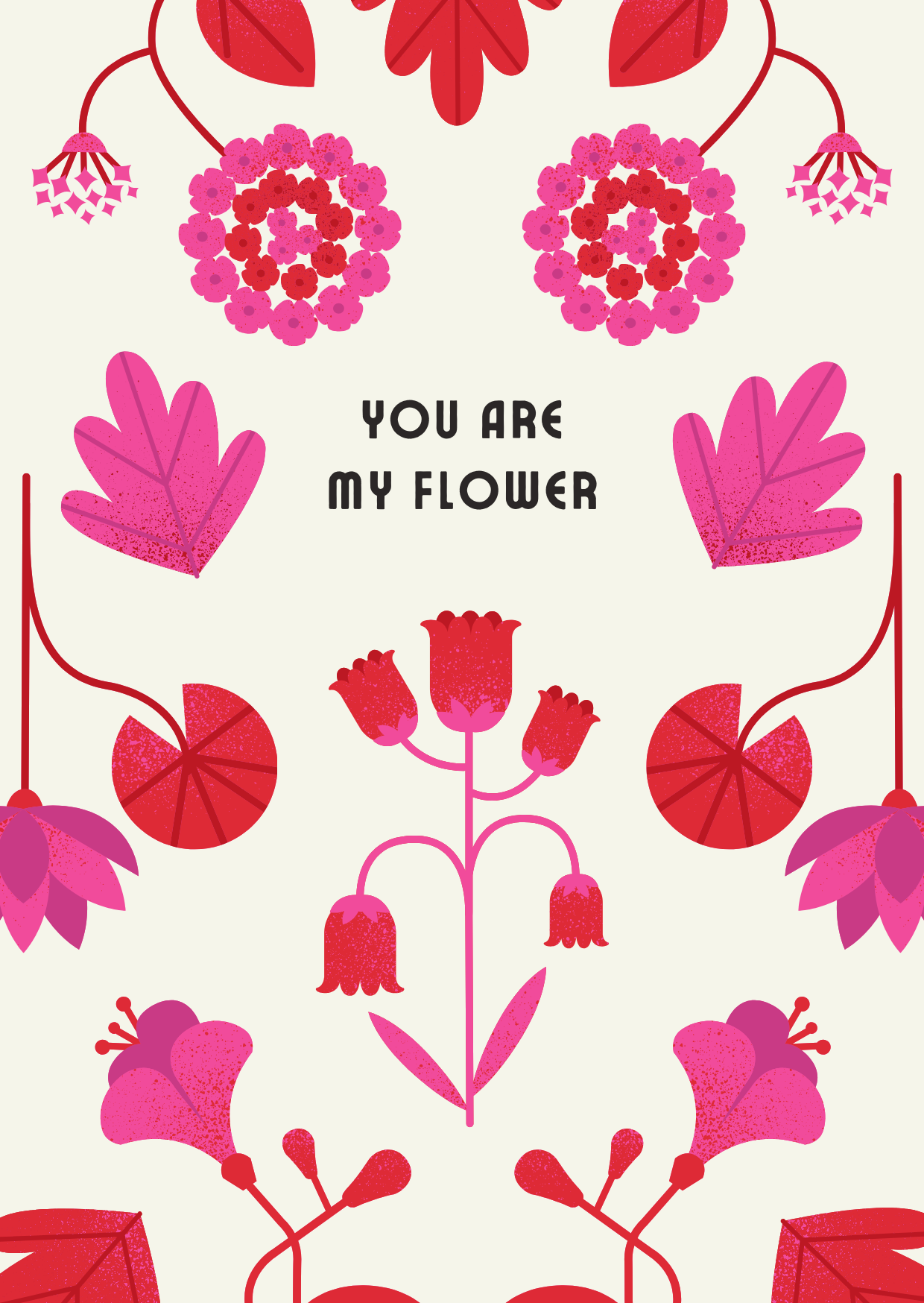 Нежная дизайнерская открытка «You Are My Flower» — это тёплое признание в чувствах, оформленное в изящном цветочном стиле. Гармоничное сочетание розовых и красных оттенков, утончённые иллюстрации цветов и лаконичная надпись делают эту открытку идеальным дополнением к букету или самостоятельным знаком внимания.